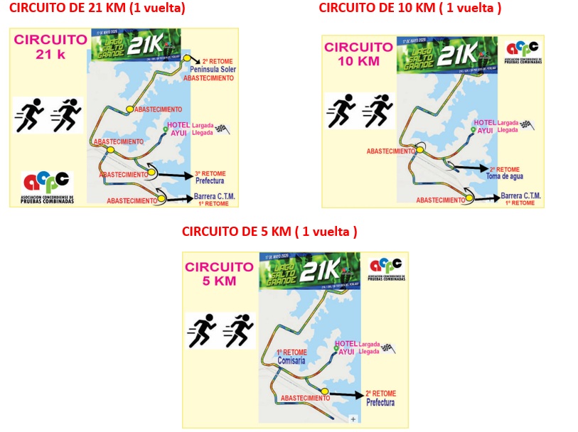 21k/10k/5k – “21K Lago Salto Grande” FECHA: DOMINGO 17 DE MAYO 2026 LUGAR: LAGO SALTO GRANDE - CONCORDIA DISTANCIA: 21,097 METROS / 10000 METROS / 5000 METROS LARGADA / LLEGADA: HOTEL AYUI HORARIO DE LARGADA: 8.30 hs. * NO SE INSCRIBE EL DIA DE LA CARRERA * NO SE SUSPENDE POR LLUVIA ![]() INSCRIPCIÓN: Las inscripciones se realizan ÚNICAMENTE online a través de la web: www.encarrera.com.ar/21k y los trámites presenciales en Complejo Maranhao (3 de Febrero y Pellegrini). La inscripción en la prueba implica la aceptación del reglamento en su totalidad. CUPO TOTAL: 700 corredores – La única manera de asegurarse el cupo es efectuando el pago de la misma, la mera preinscripción no asegura la reserva del lugar. COSTOS INSCRIPCIONES 1ª ETAPA: desde el LUNES 2 de Febrero al DOMINGO 15 de Marzo.
